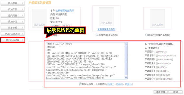 自由编辑产品展示风格代码